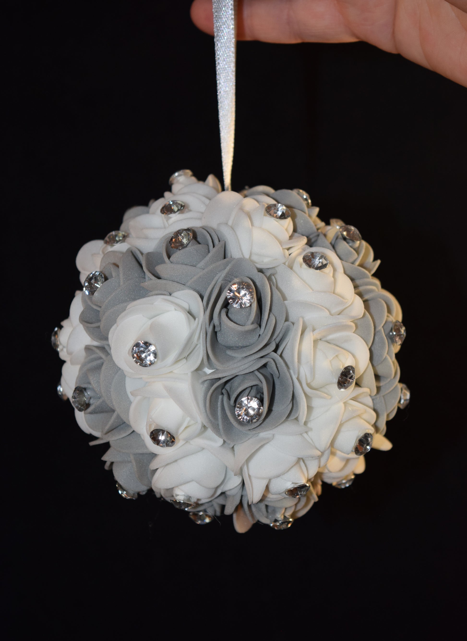 Boule avec des petites roses et des strass.